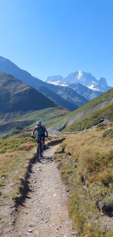 Ideal mountain biking for families or less experienced riders who want to spend a day discovering stunning landscapes and local gastronomy, on easy trails and country roads of Aosta and Chamonix valley.